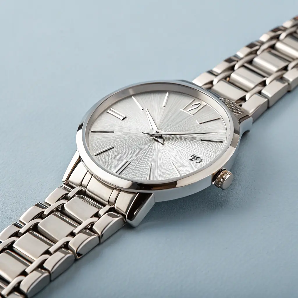 This elegant wrist watch features a minimalist design with a stainless steel band and a clean, round dial. The watch combines functionality with style, making it suitable for both everyday wear and special occasions. Its precise quartz movement ensures accurate timekeeping. A perfect accessory to elevate any outfit.